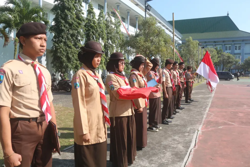 PGMI UIN Malang-Senin,14 Agustus 2023 mahasiswa PGMI UIN Malang mengikuti serangkaian kegiatan peringatan hari pramuka dan ulang janji yang diselenggarakan di lapangan utama Universitas Islam Negeri Maulana Malik Ibrahim Malang. Mahasiswa yang bertugas dalam kegiatan peringatan hari pramuka ini dari internal mahasiswa PGMI. Pembina dalam kegiatan peringatan hari pramuka iniĀ yakni kak Zauji,beliau menyampaikan beberapa hal kepada mahasiswa untuk menepati dasa dharma dan satya pramuka yang telah diucapkan dengan baik.Ā